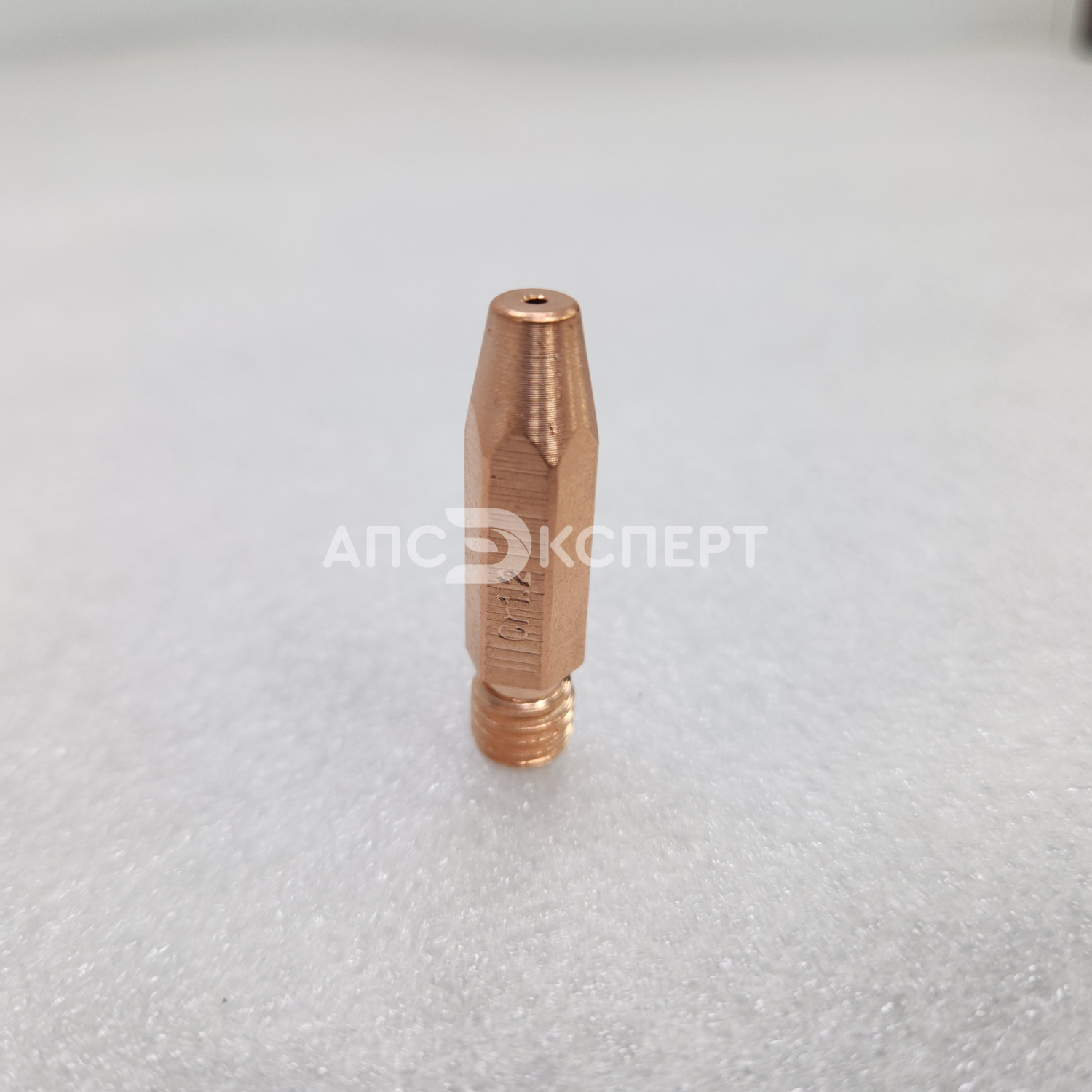 Усиленный контактный наконечник из сплава меди, хрома и циркония (CuCrZr) для полуавтоматической сварки. Предназначен для работы со сплошной и порошковой проволокой диаметром 1.0–1.2 мм. Длина 35 мм и резьба М8×1.0 обеспечивают совместимость с горелками стандарта RF-45 и аналогами.