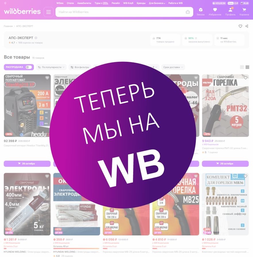Теперь вы можете купить сварочное оборудование, электроды, сварочные горелки и комплектующие в нашем магазине на Wildberries.